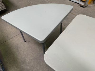 Mesa de catering esquinera para eventos, conferencias y reuniones. Mesa con sistema de unión angular. Multiplica la variedad de composiciones posibles con mesas rectangulares.