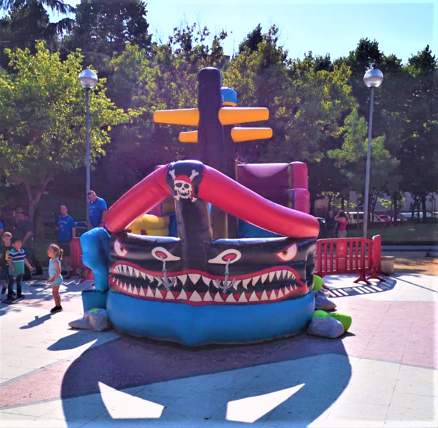 ¡Zarpa hacia la aventura con nuestro espectacular hinchable Barco Pirata! Con su imponente diseño de proa afilada, colores vivos y personajes piratas ilustrados, este hinchable se convierte en el centro de atención de cualquier evento infantil.