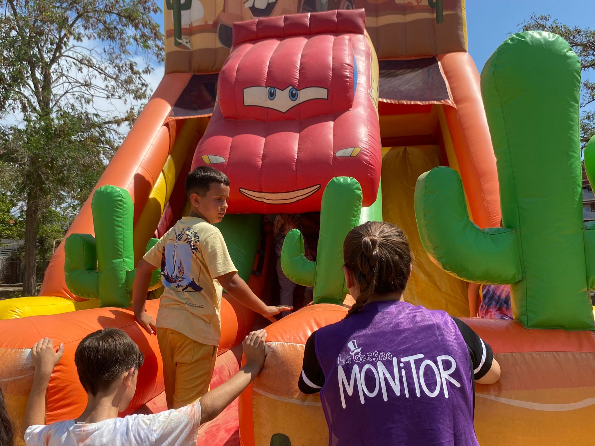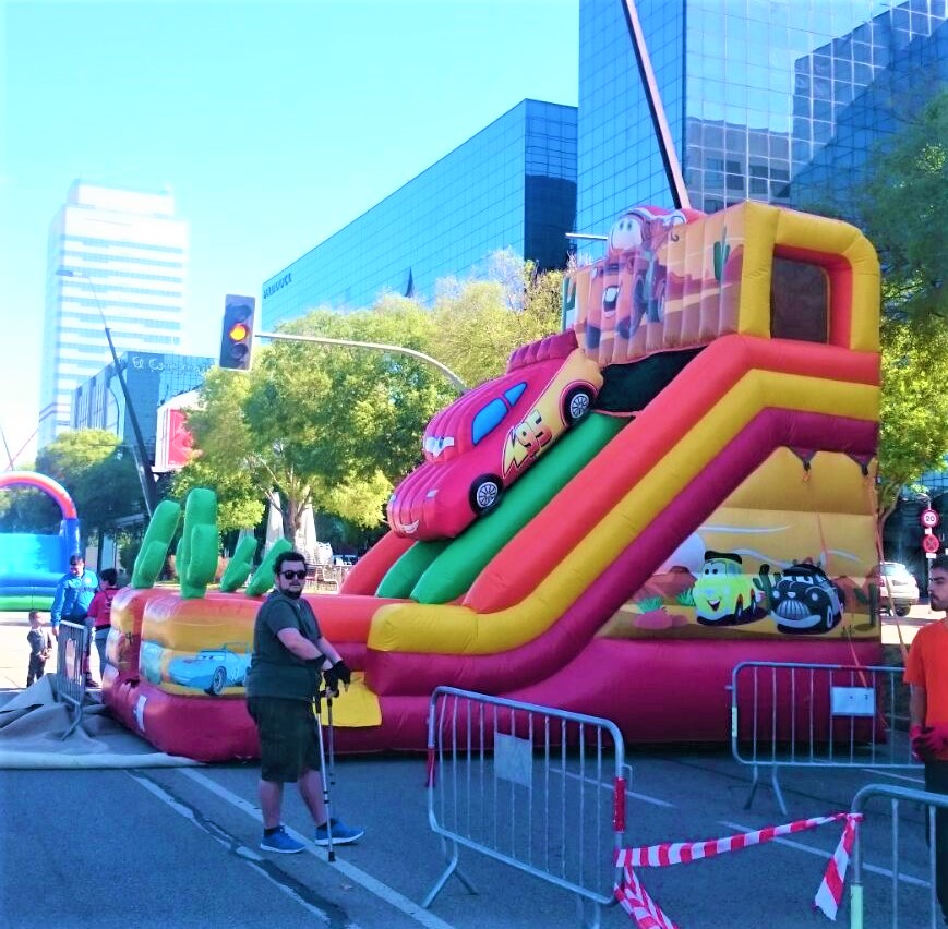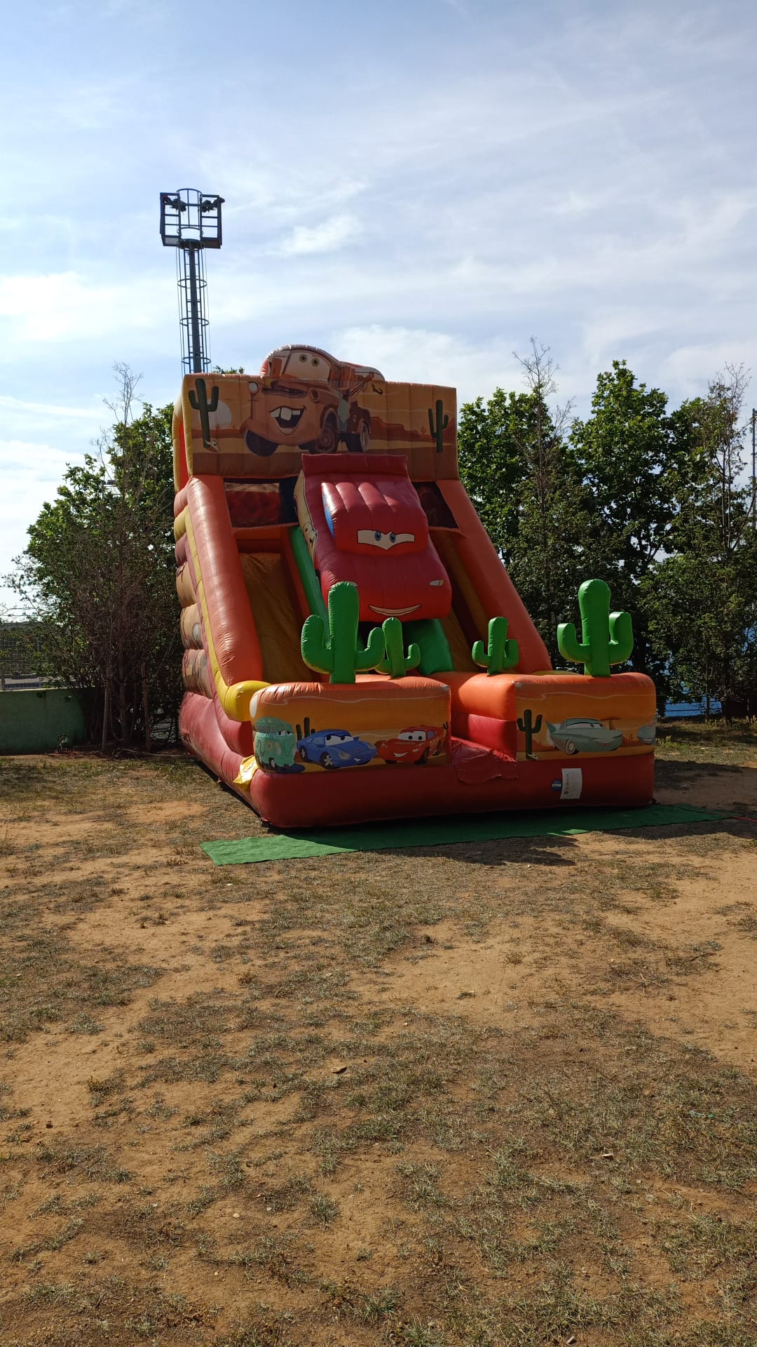 Lleva la emoción de la película Cars a tu evento con este vibrante hinchable. Incluye dos emocionantes toboganes coronado por un coche de carreras acompañado con obstáculos como cactus. Ideal para fiestas infantiles y celebraciones, este hinchable garantiza horas de diversión segura para los pequeños amantes de la velocidad.