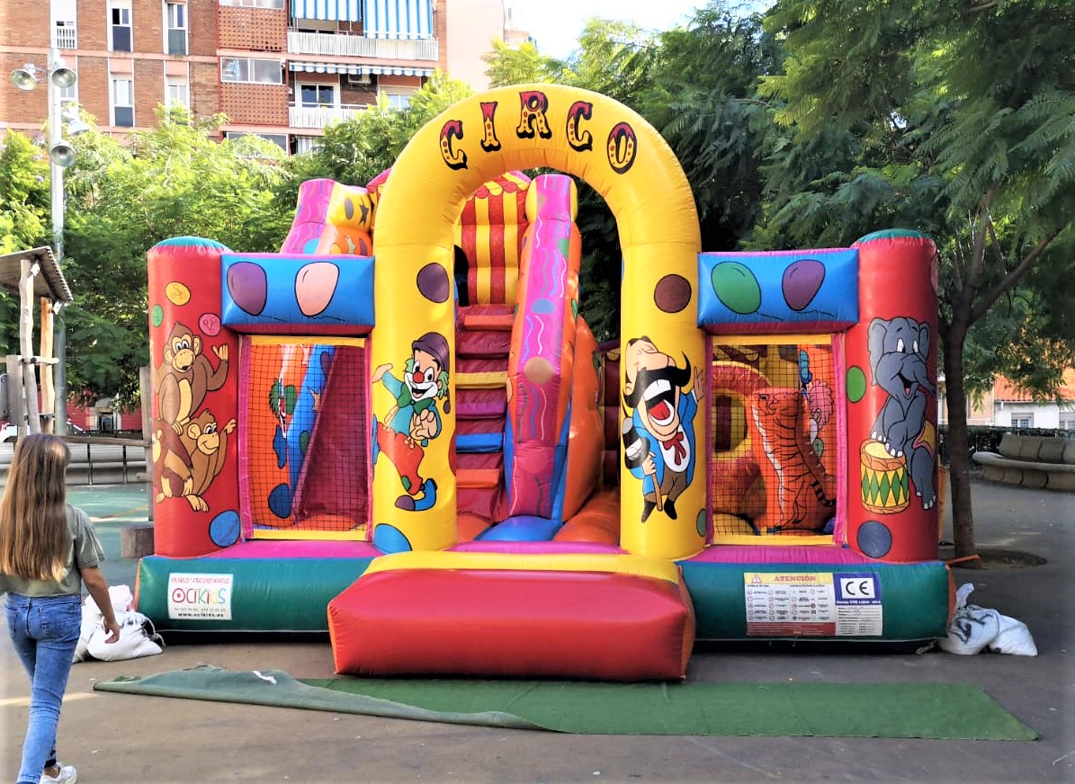 ¡Bienvenidos al espectáculo más divertido del mundo! El hinchable Circo es una explosión de color, juegos y alegría, ideal para animar cualquier fiesta infantil. Con ilustraciones de payasos, monos malabaristas, equilibristas y una gran carpa de circo, este castillo hinchable estimula la imaginación y garantiza horas de diversión.