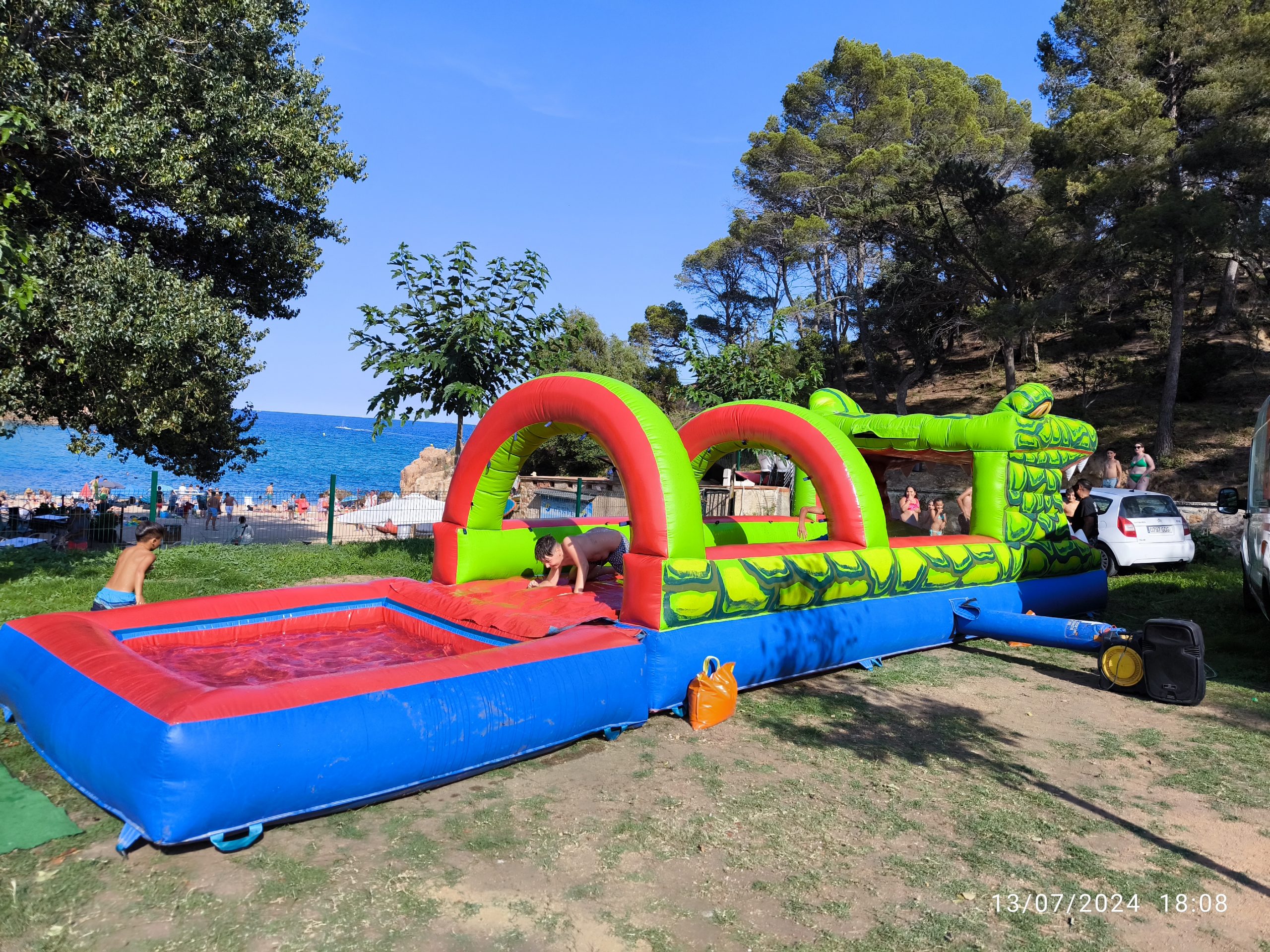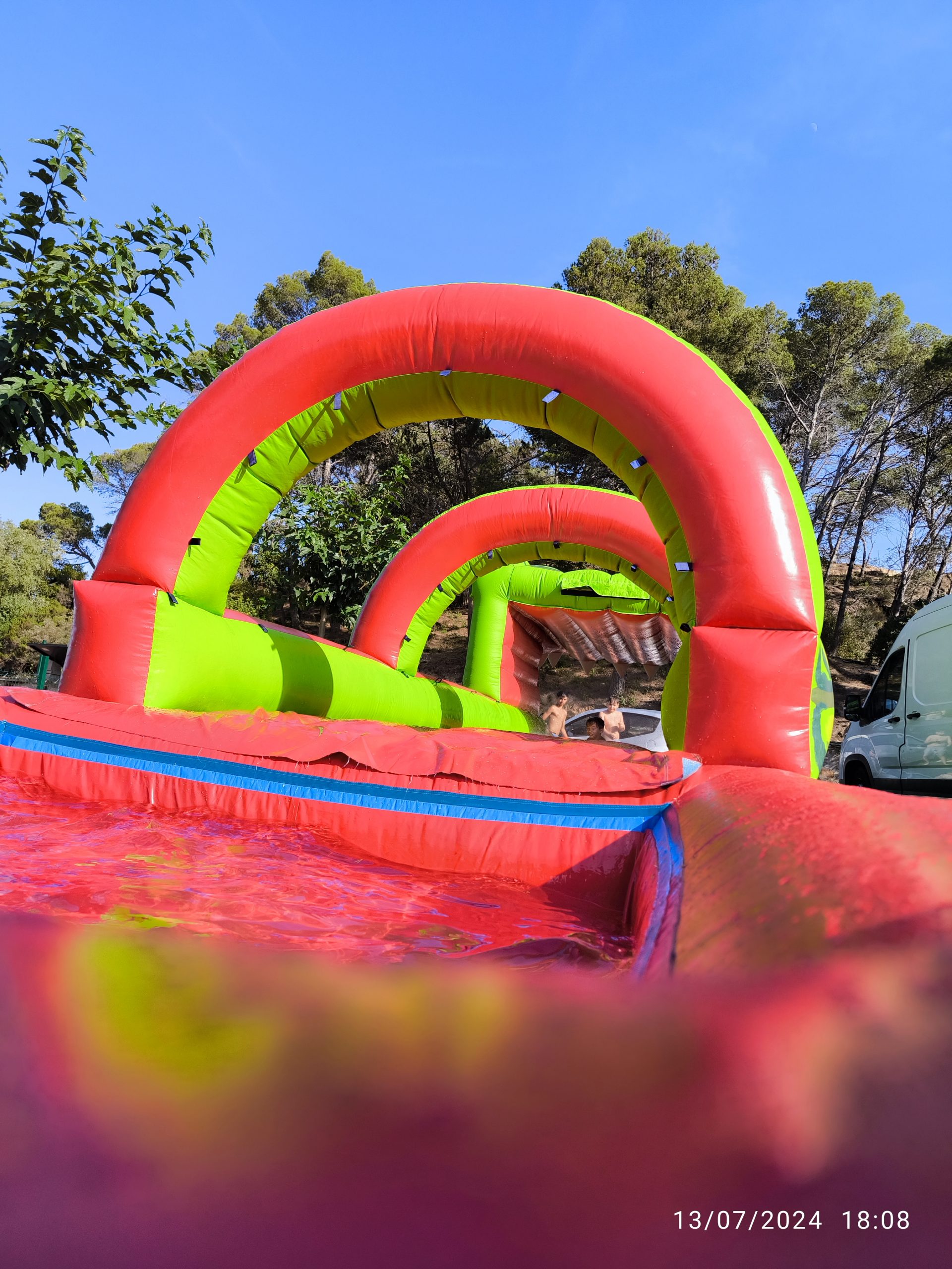 Un festival de color y diversión para los pequeños. Este hinchable ofrece una gran plataforma para deslizarse antes de un remojón final, todo en uno. ¡Ideal para horas de juego activo y seguro en cualquier evento infantil!