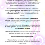• DJ & Showman: Contamos con un DJ experto en crear el ambiente perfecto y un showman animador encargado de mantener la energía al máximo para que la fiesta no decaiga.+1